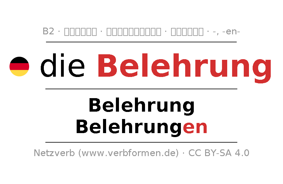 - एकवचन: die Belehrung, der Belehrung, der Belehrung, die Belehrung