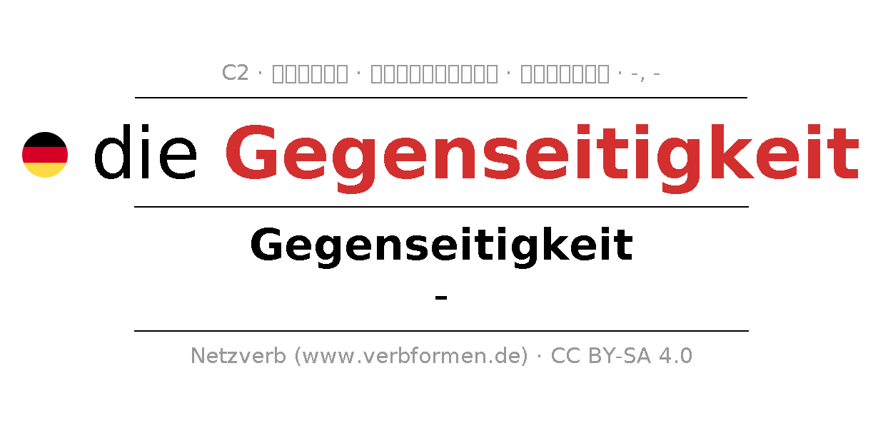 - एकवचन: die Gegenseitigkeit, der Gegenseitigkeit, der Gegenseitigkeit, die Gegenseitigkeit