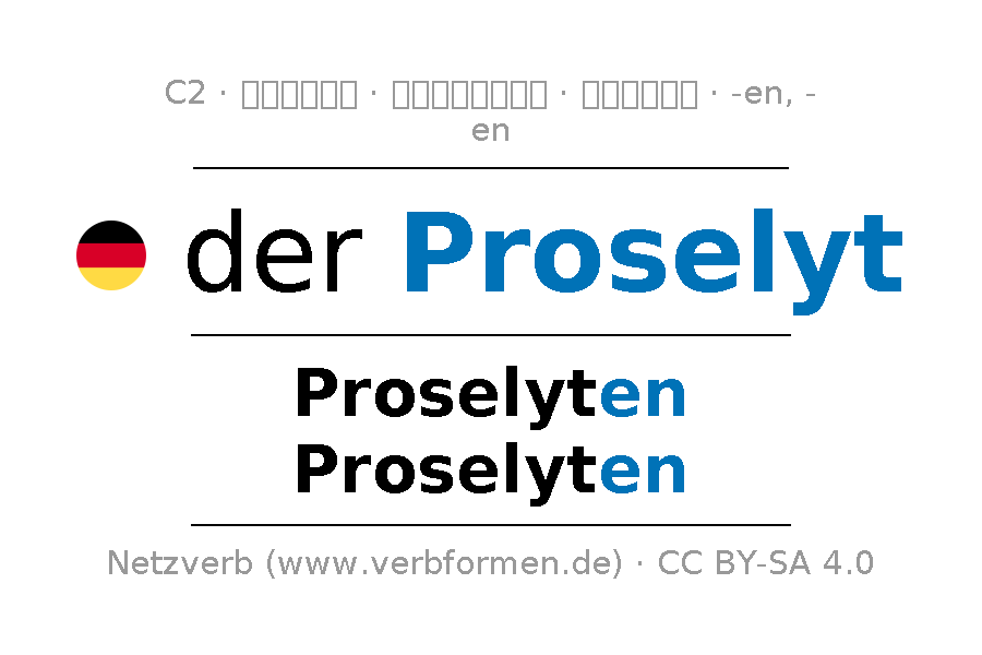 - एकवचन: der Proselyt, des Proselyten, dem Proselyten, den Proselyten