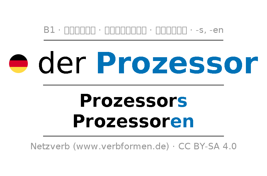 - एकवचन: der Prozessor, des Prozessors, dem Prozessor, den Prozessor